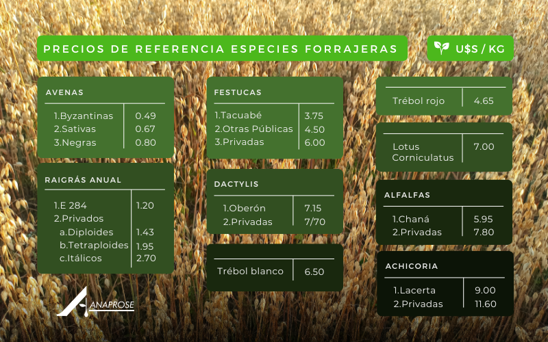 Encontramos, que las especies, que lograron buenas producciones (las gramíneas en general), tienen precios similares o inferiores a la zafra pasada, mientras que especies que los factores climáticos hicieron que la producción no fuera tan buena, muestran precios algo superiores.